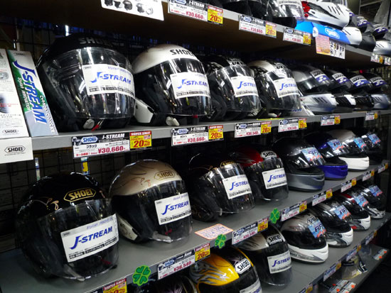 バイクショップでもヘルメットやグローブなどの基本的な用品は売っていますが、やはり専門のバイク用品店のほうが品ぞろえが豊富で、見る楽しみ・選ぶ楽しみがあります。