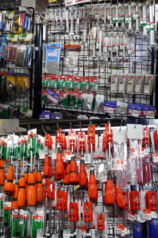 ドライバー、ニッパー、ペンチ、六角レンチ、スパナなど、一通りの工具はバイクについているはずですが、よい品質のものではありません。できればそれぞれ品質のよいものを買い求めておくと、ほぼ半永久的に使えますから、かえって安上がりと言うものです。