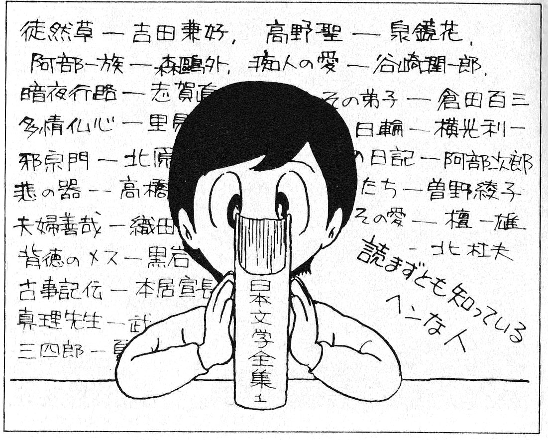 ところで、実になさけないのだが、ぼくは「罪と罰」を読んでない。そのほか「赤と黒」「風と共に去りぬ」「戦争と平和」「若きウェルテルの悩み」……など、古典的名作のほとんどを読んでないのだ。(日本のものならやや読んではいるが)でも作者はもちろん、主人公の名やあらすじも知っている。かなりのスピードでボタンを押して答えられるであろう。しかしそれが何になるのだ。小説を読んで自分なりに考えた人と、人より先にボタンを押して「ドストエフスキー」と言う人と、どちらが偉いか言うまでもない。